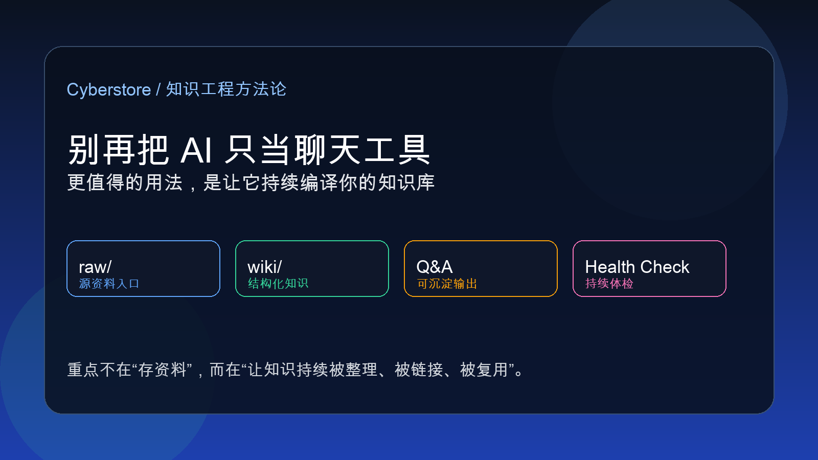 我现在越来越确定,AI 真正值钱的地方,不只是能回答问题,而是能把你的知识系统变成一个会持续生长的工作台。